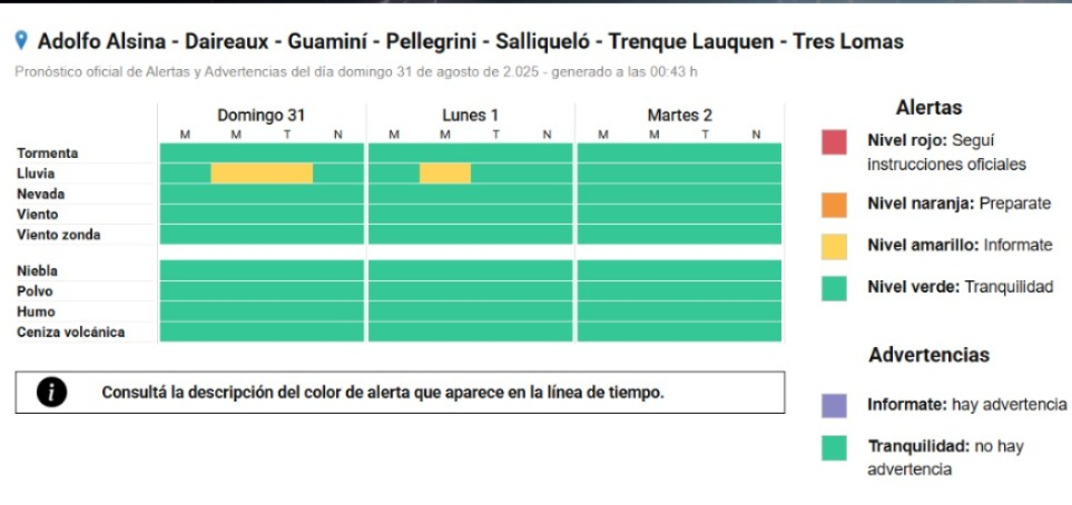 La región está en alerta amarilla, pronosticándose hasta el lunes en diferentes horarios.
