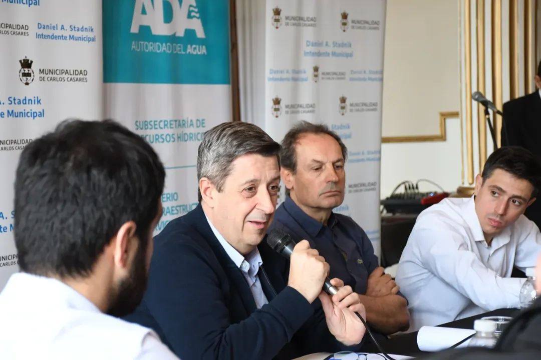 El presidente de la Autoridad del Agua (ADA), Damián Costamagna; el subsecretario de Recursos Hídricos bonaerense, Néstor Álvarez; y la vicepresidenta del Comité de la Subregión A3 de la Cuenca del Salado, María José Gentile (intendenta de Nueve de Julio). También asistieron Sergio Barenghi (Bragado), Luis Pugnaloni (Hipólito Yrigoyen), Salvador Serenal (Lincoln), Francisco Recoulat (Trenque Lauquen), se reunieron en Carlos Casares, este jueves.