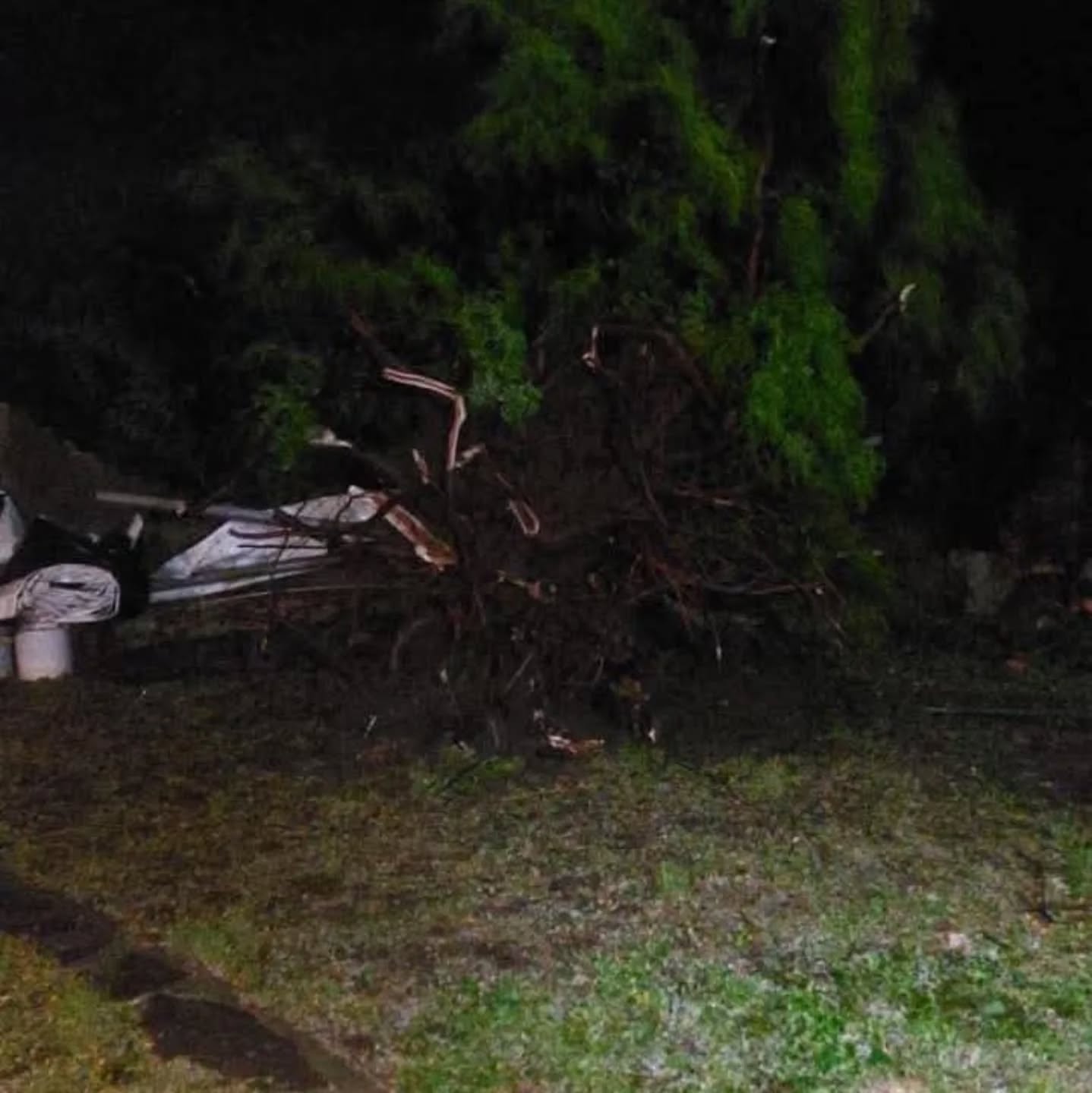 También en Daireaux se reportaron caídas de árboles en algunos establecimientos rurales que, al menos en un caso, generó daños para un vehículo que quedó aplastado por un árbol arrancado.