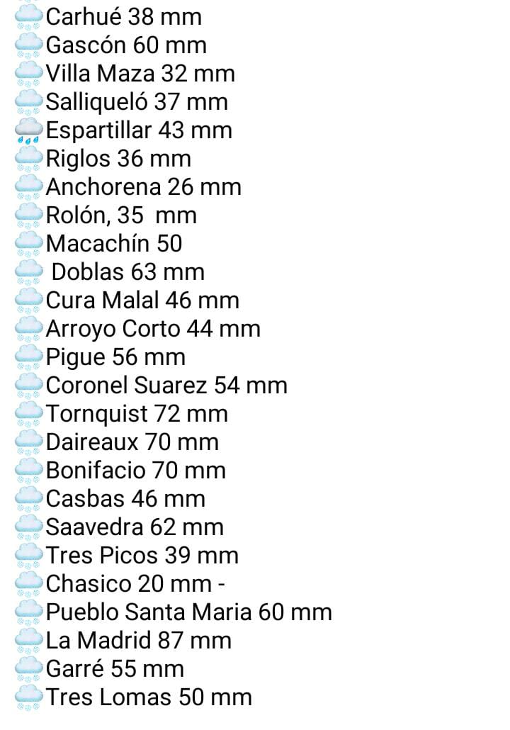 Trenque Lauquen (fin de semana): 45 mm.