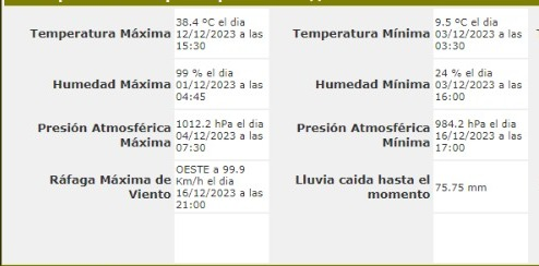 Datos en lo que va de Diciembre en Trenque Lauquen.