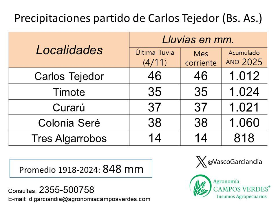 La Fortuna, Zona Corazzi, lluvia hasta las 8 hs 30 mm.