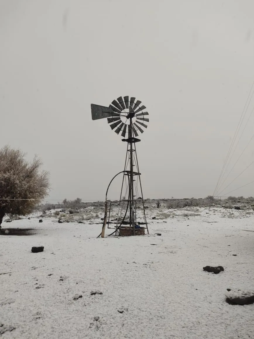 Los habitantes del paraje Chos Malal, al oeste de la provincia de La Pampa, se llevaron una sorpresa en la mañana de este miércoles: una capa de nieve recubrió todo el paisaje.