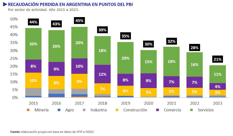 El informe concluye que la caída de la evasión en 2023 confirma y profundiza una tendencia iniciada en 2022, ahora potenciada por la digitalización y la mayor trazabilidad de las transacciones económicas. Aunque el comportamiento sectorial es alentador y la baja es la más pronunciada de toda la serie, la magnitud de los recursos perdidos —equivalente a una quinta parte del PBI— sigue mostrando que la informalidad continúa siendo un desafío estructural para la Argentina.
