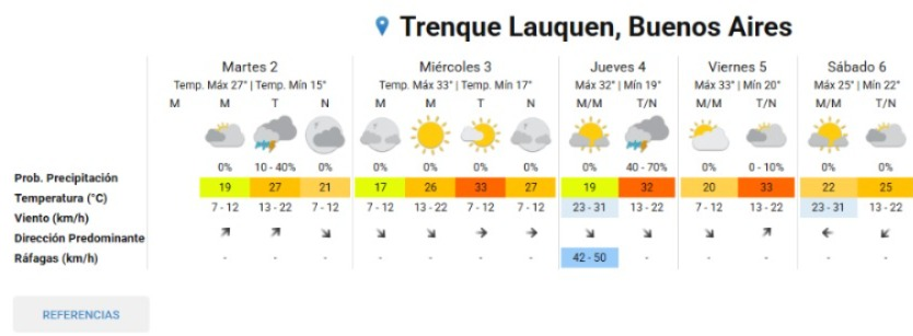Pronóstico válido hasta el sábado con posibilidades de lluvias el jueves por la tardecita y noche