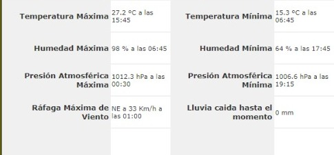 La temperatura máxima del domingo se registró a las 15.45. Alcanzó a 27.2°.
