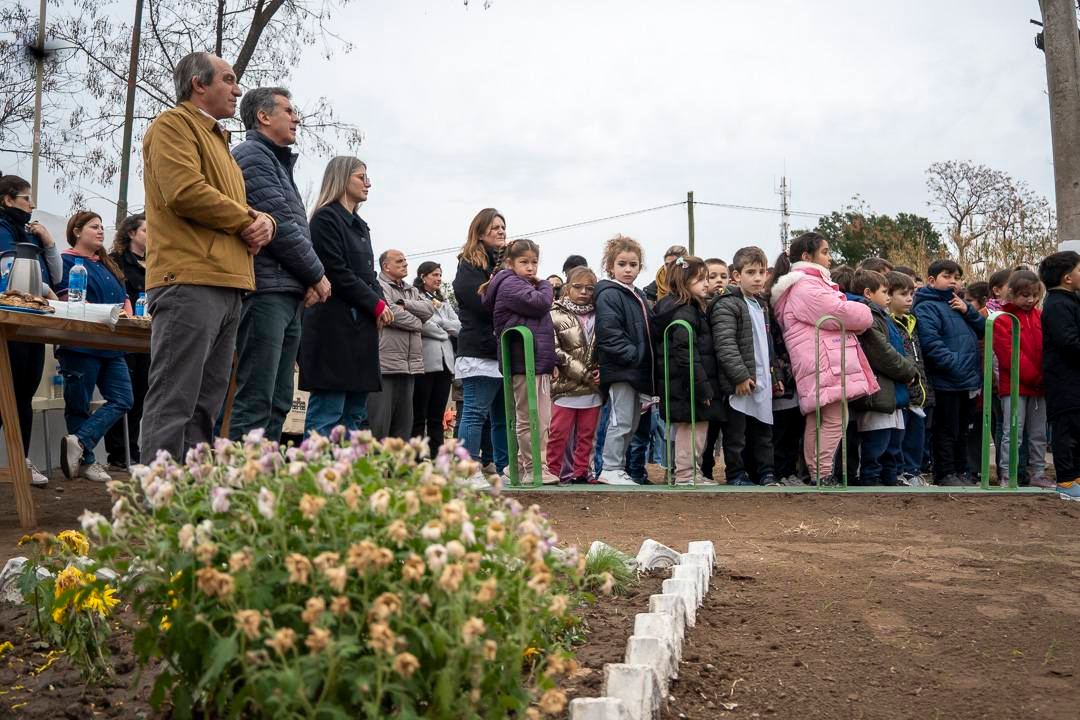 El acto contó con la participación del Intendente Juanci Martínez, la presidenta de la Fundación Banco Provincia, Micaela Ferraro, el Delegado Municipal, Héctor Raúl Echeverría, autoridades educativas, concejales, consejeros escolares, funcionarios municipales, alumnos y docentes del Jardín de Infantes N° 902, Escuela Primaria N°5 y vecinos de la localidad.
