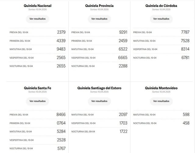 Sin categoría Quinielas: Nacional, Provincia, Córdoba, Santa Fe, Santiago del Estero, Montevideo del 11 de abril 11 abril, 2026 115 Tags: Actualidad, ECONOMÍA, Entretenimiento Más historias Sin categoría Notas Necrologicas: Cooperativa de Electricidad Trenque Lauquen 11 abril, 2026 103 Sin categoría Se estima un fin de semana agradable en #TrenqueLauquen, apareciendo algunas nubes 11 abril, 2026 126 Sin categoría Solo 1 de cada 10 noticias habla de niños en la TV argentina: cuando aparecen, es para hablar de violencia 10 abril, 2026 263 Sin categoría Sebastián Sánchez Ramos asumió como gerente General de Camuzzi Energía S.A 10 abril, 2026 222 Sin categoría Olavarría tiene su Polo Judicial 10 abril, 2026 206 Sin categoría La industria cayó 8,7% en febrero y acumula ocho meses en baja 10 abril, 2026 187