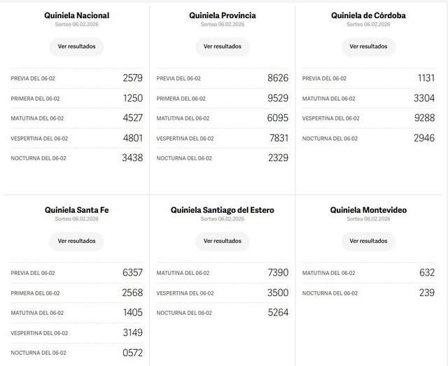 Sin categoría Quinielas: Nacional, Provincia, Córdoba, Santa Fe, Santiago del Estero, Montevideo del 6 de Febrero 7 febrero, 2026 70 Tags: Actualidad Más historias Sin categoría Complicada situación para Kicillof: los gremios docentes y los trabajadores estatales encuadrados en la Ley Nº 10.430 descartaron la oferta salarial 6 febrero, 2026 268 Sin categoría La oficina de Servicios para el Empleo de Trenque Lauquen informó las búsquedas laborales disponibles 6 febrero, 2026 167 Sin categoría Aspectos impositivos y económicos de la reforma laboral 6 febrero, 2026 133 Sin categoría El secretario de Turismo y Cultura de Monte Hermoso, Franco Gentili dijo que hubo un buen promedio de ocupación en enero 6 febrero, 2026 224 Sin categoría Durante el mes de enero, la Agencia Nacional de Seguridad Vial (ANSV) controló 537.019 vehículos y sancionó a 12.474 conductores 6 febrero, 2026 214 Sin categoría Desde ayer el Carnaval Artesanal de Lincoln, con sus tradicionales cabezudos, minicarrozas y las atracciones mecánicas 5 febrero, 2026 265