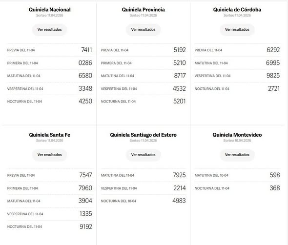 Sin categoría Quinielas: Nacional, Provincia, Córdoba, Santa Fe, Santiago del Estero y Montevideo del 11 de Abril 11 abril, 2026 71 Tags: Entretenimiento, REGIONAL Más historias Sin categoría Necrológica: Cooperativa de Electricidad Trenque Lauquen 11 abril, 2026 348 Sin categoría Se estima temperatura máxima de 24° para Trenque Lauquen, con algunas nubes 11 abril, 2026 114 Sin categoría Liga Profesional de Fútbol: ganaron Instituto, Estudiantes, Independiente Rivadavia de Mendoza, y empate en la bombonera 11 abril, 2026 126 Sin categoría Movimiento del Puerto de Bahía Blanca, en marzo del 2026 11 abril, 2026 182 Sin categoría Notas Necrologicas: Cooperativa de Electricidad Trenque Lauquen 11 abril, 2026 438 Sin categoría Kicillof visitó Carlos Tejedor y Lincoln acentuando en en la importancia del Estado presente durante la gestión de gobierno 10 abril, 2026 301