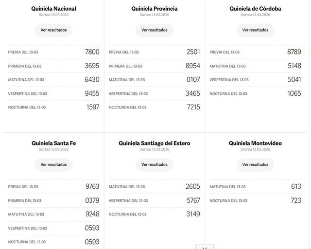 Quinielas: Nacional, Provincia, Córdoba, Santa Fe, Santiago del Estero y Montevideo del 14 de marzo