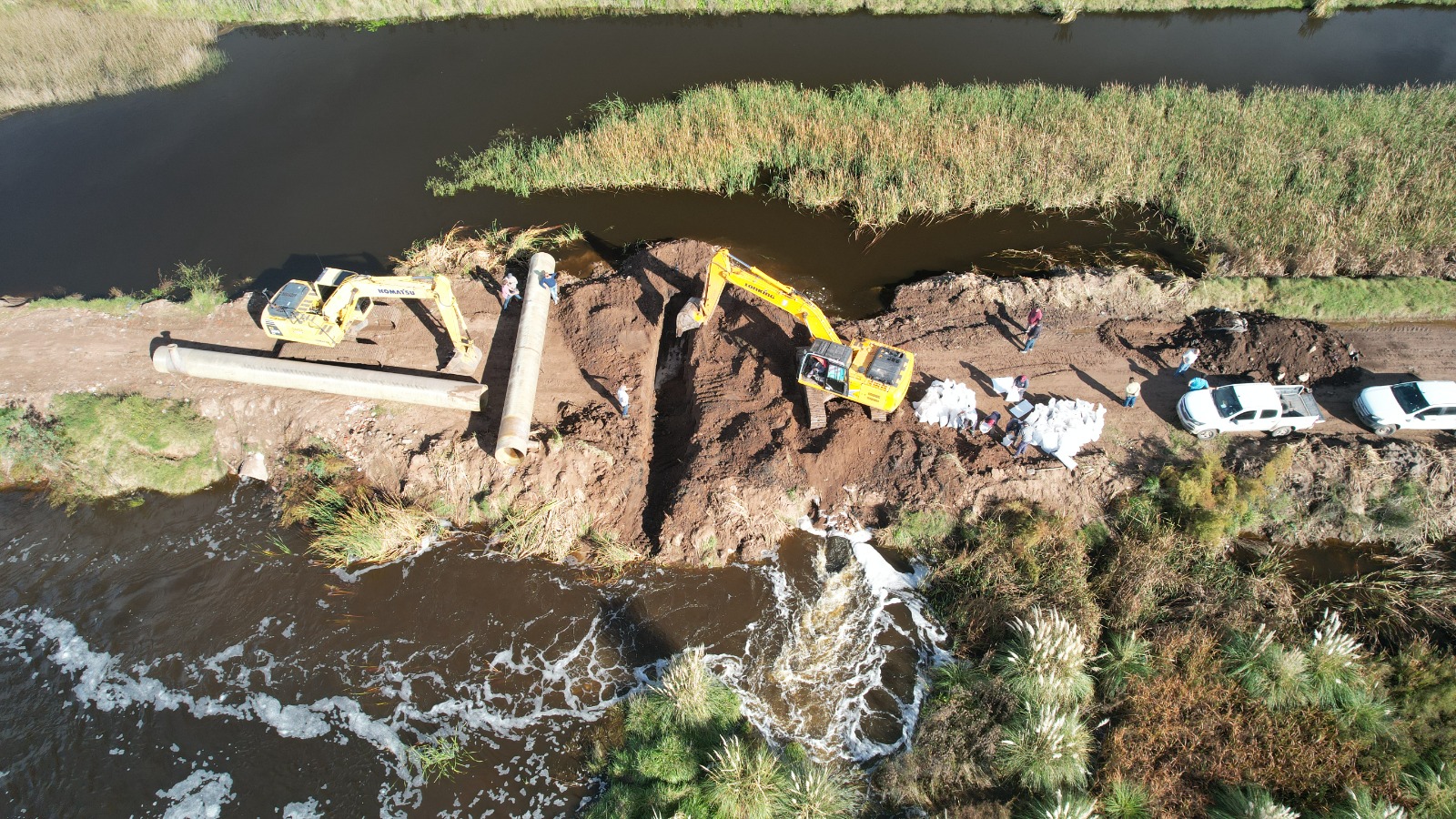 Uno de los ejes centrales de la intervención es permitir el paso controlado del excedente hídrico hacia territorio bonaerense, lo que contribuirá a descomprimir la acumulación de agua en el lado pampeano y prevenir nuevos anegamientos.