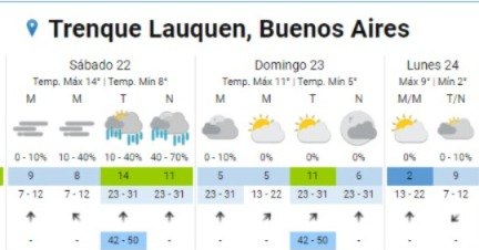 Se produciría una sensible baja en la temperatura el domingo y lunes.,