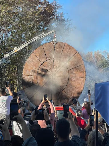 El punto sobresaliente es la elaboración de la torta frita gigante, una hazaña gastronómica que demanda más de 1.200 kilos de harina y el uso de una sartén de más de 5 metros de diámetro.