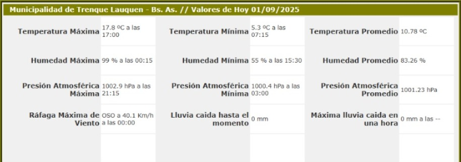 Sensores Climáticos Municipalidad de Trenque Lauquen