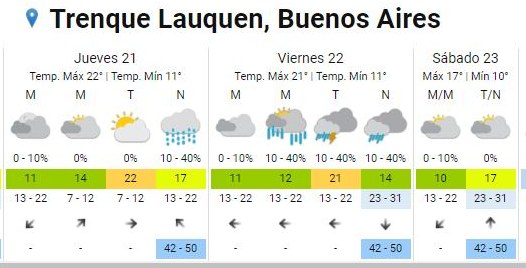 Pronóstico hasta el sábado 23.