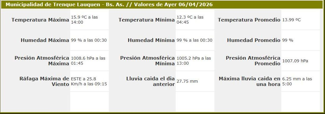 Sensores Climáticos Municipalidad de Trenque Lauquen