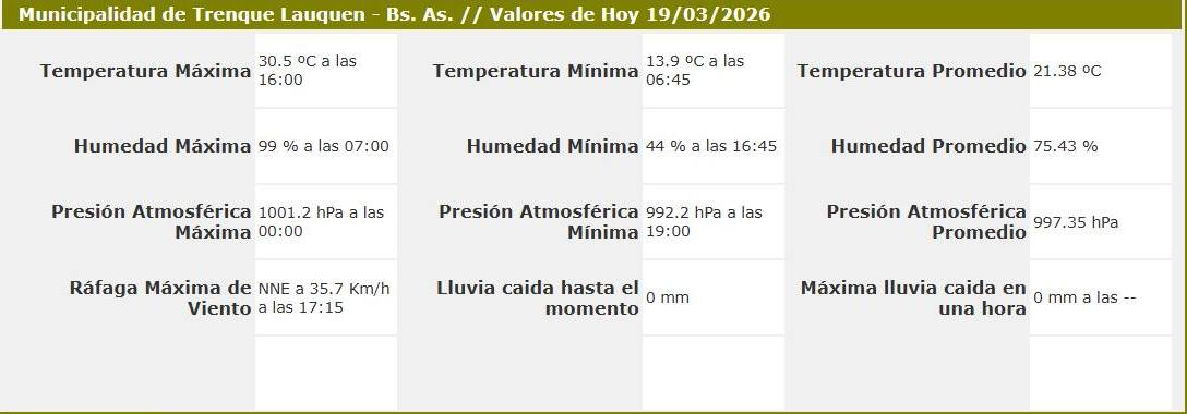 Sensores Climáticos Municipalidad de Trenque Lauquen