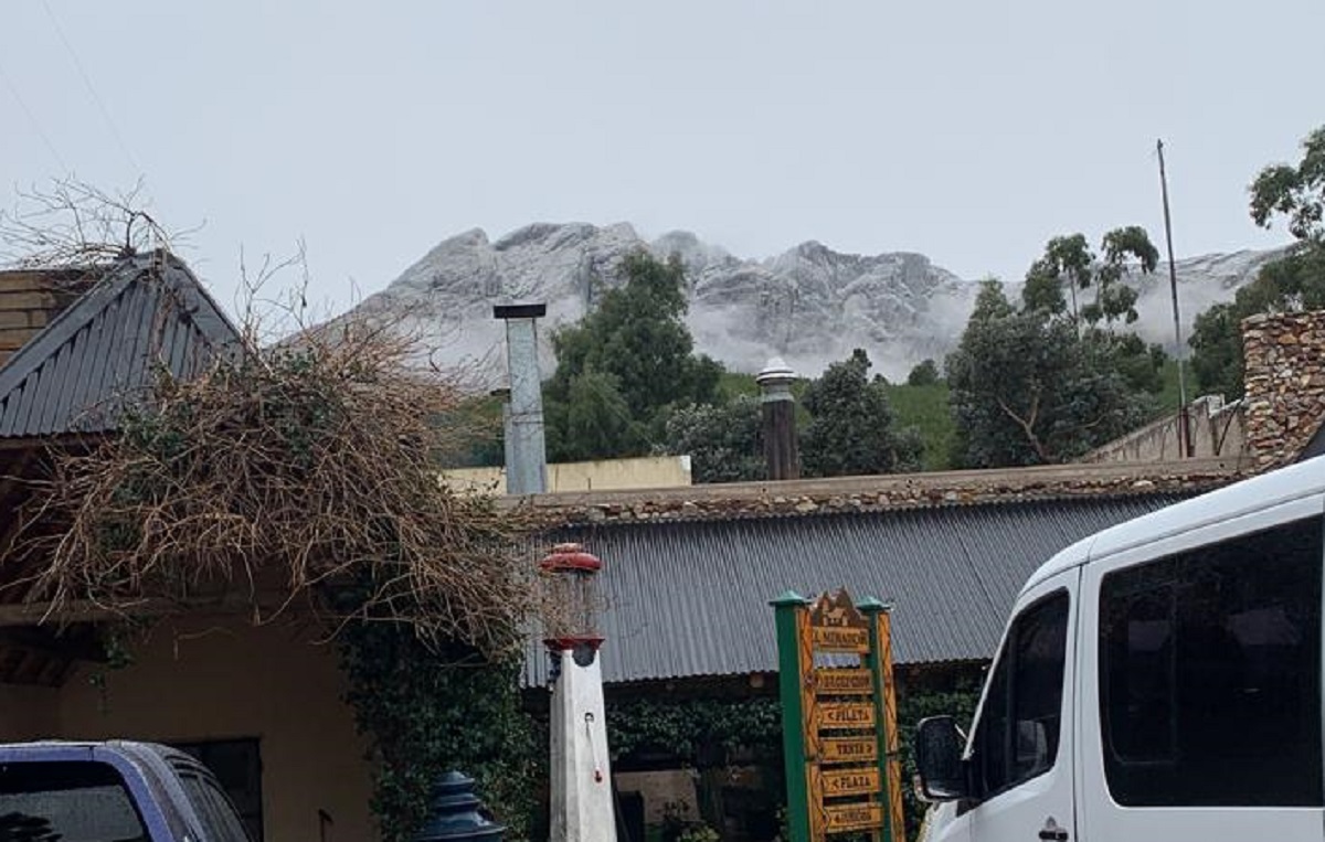 Después del mediodía de ayer al disiparse las nubes bajas de los cerros, se vió nieve acumulada en las cumbres.