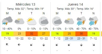 Servicio Meteorológico Nacional: pronóstico para miércoles y jueves.