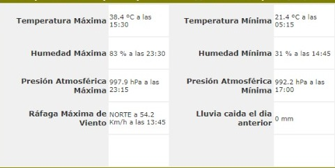 La temperatura máxima de ayer fue de 38.4° y se registró a las 15.30. Hubo ráfagas de viento de hasta 54.2 km/h