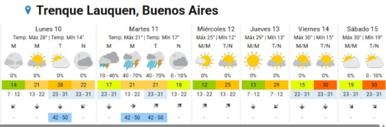 El domingo fue un día muy agradable en Trenque Lauquen con temperatura máxima que llegó a los 28.7 grados, con ráfagas de viento del norte llegando a 26.7 kilómetros por hora