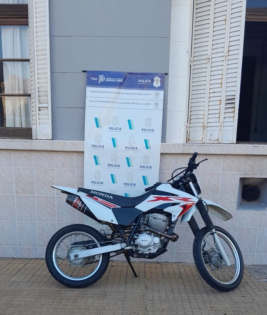 Inspectores de Tránsito del Municipio y efectivos de la Comisaría 1ª de Trenque Lauquen, del Destacamento de Seguridad Vial, Patrulla Rural y DDI allanaron este una vivienda en la calle Tala 436 y secuestraron una moto con la cual su conductor, un joven de 20 años, realizaba ruidos molestos (Contraexplosiones).