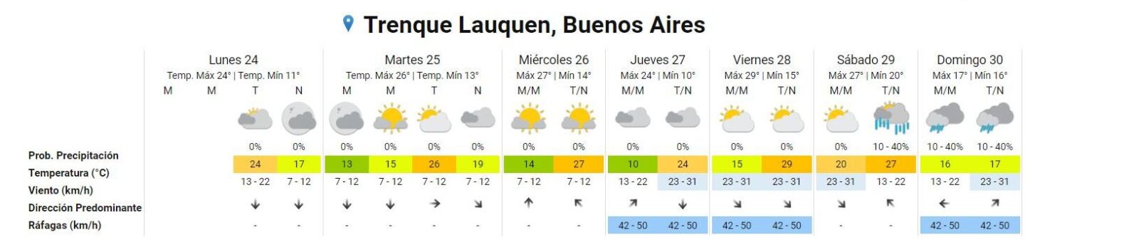 Se pronostican altas temperaturas para esta época del año en Trenque Lauquen. Así se desprende del informe a las 13.30 del Servicio Meteorológico Nacional y que publicamos.