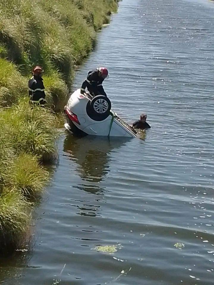 Un automóvil cayó dentro del Canal Jauretche, en jurisdicción de Pehuajó