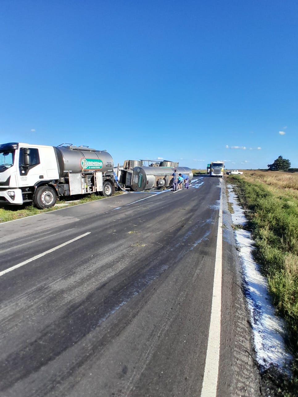 Un camión de transporte de leche protagonizó un despiste y vuelco en el kilómetro 304. A esa altura la ruta está descalzada.