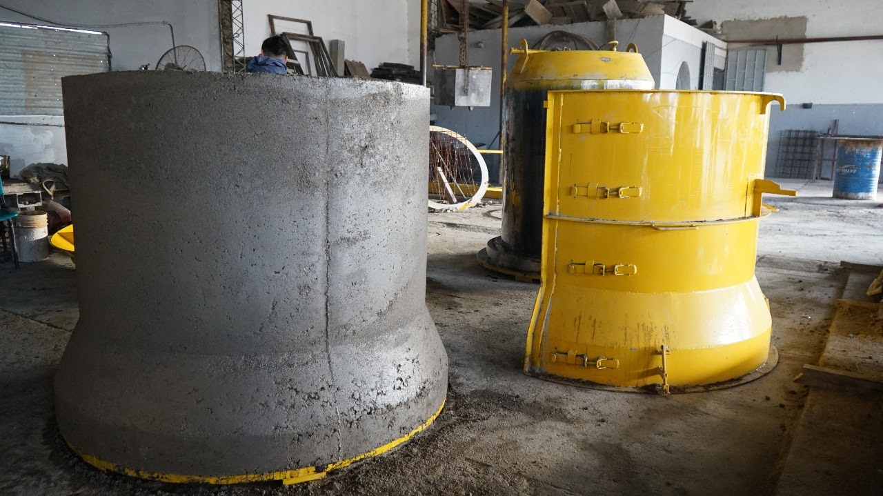 Cuenta con motor y vibrador dentro del molde interior de acero reforzado para fabricar caños de 1200 mm en forma estándar. Además, tiene un sistema de cierre rápido de la moldura exterior y aros de base de chapa de hierro.