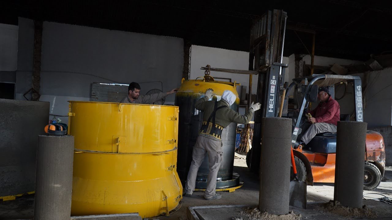 Nueva máquina del municipio de Trenque Lauquen para fabricar caños de hormigón para las obras de desagües pluviales y cloacas que se construyan en todas las localidades del distrito.